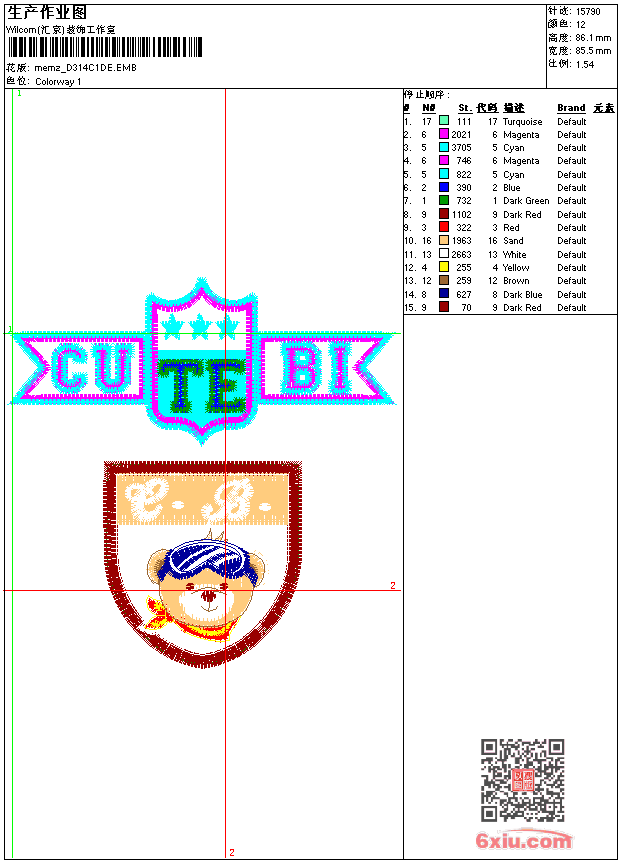 - 版带文件需绣花软件方可打开,可配色打印导出各种格式或直接上机绣。如无绣花软件可下载1:1模拟效果图。