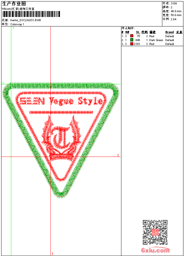 - emb花版参数: 大小:35.50 KB / 尺寸:51*50[毫米] / 针数:3109针 / 线色:2 / 格式:emb / 版本:9