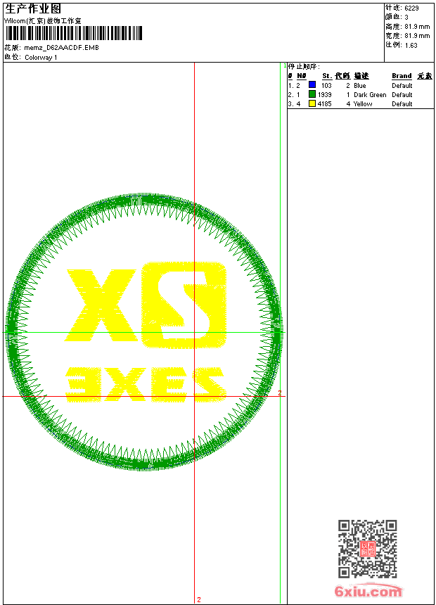 - 版带文件需绣花软件方可打开,可配色打印导出各种格式或直接上机绣。如无绣花软件可下载1:1模拟效果图。