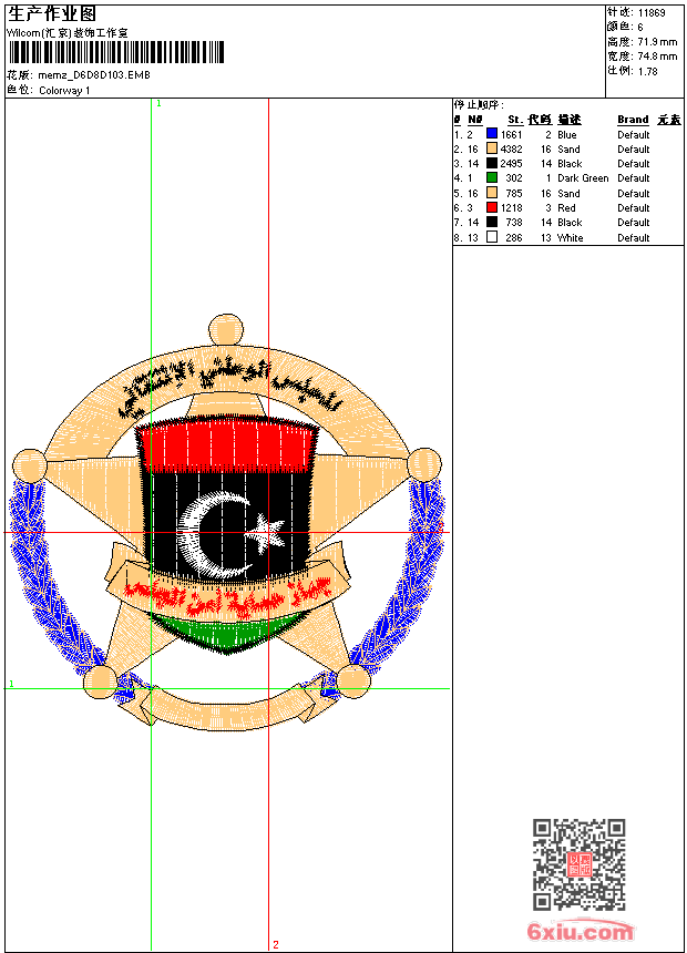 - 版带文件需绣花软件方可打开,可配色打印导出各种格式或直接上机绣。如无绣花软件可下载1:1模拟效果图。