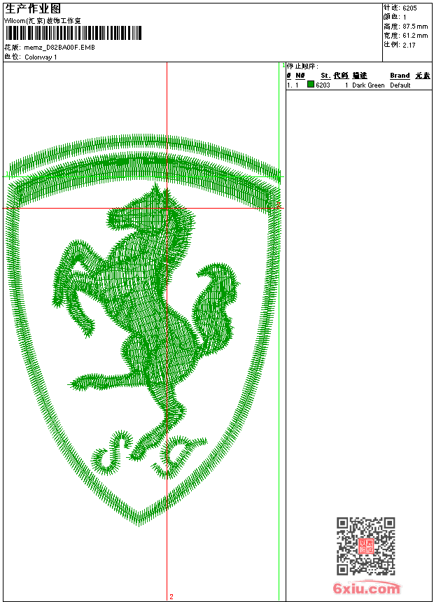 - emb花版参数: 大小:50.00 KB / 尺寸:61*87[毫米] / 针数:6205针 / 线色:1 / 格式:emb / 版本:9