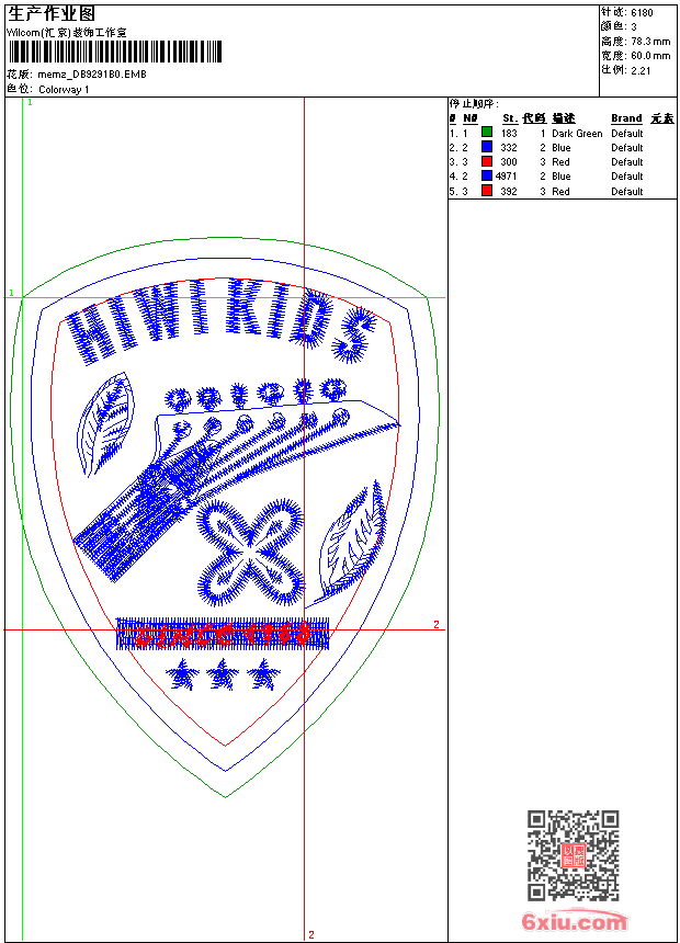- emb花版参数: 大小:64.00 KB / 尺寸:60*78[毫米] / 针数:6180针 / 线色:3 / 格式:emb / 版本:9