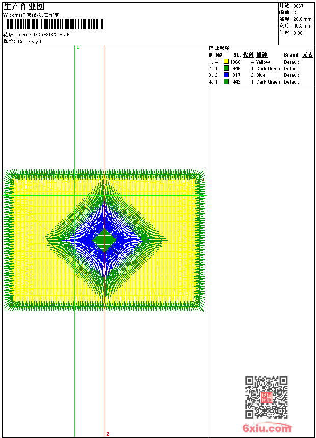 - emb花版参数: 大小:24.00 KB / 尺寸:40*29[毫米] / 针数:3667针 / 线色:3 / 格式:emb / 版本:9