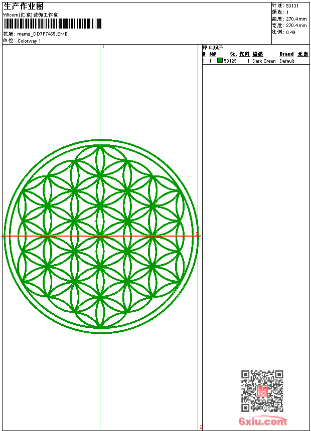 - emb花版参数: 大小:240.00 KB / 尺寸:270*270[毫米] / 针数:53131针 / 线色:1 / 格式:emb / 版本:9