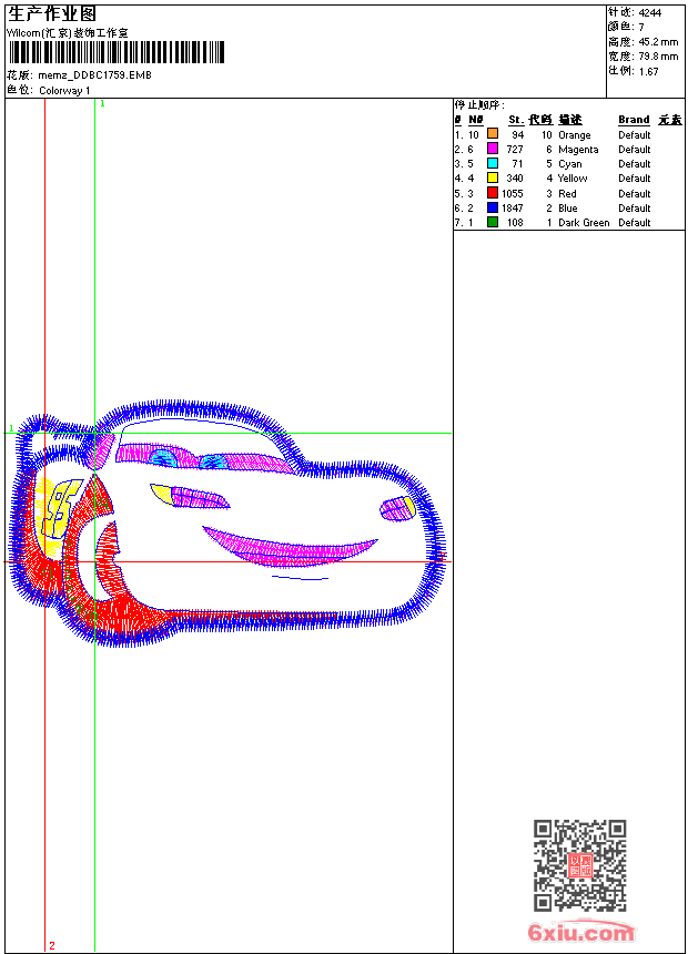 - 版带文件需绣花软件方可打开,可配色打印导出各种格式或直接上机绣。如无绣花软件可下载1:1模拟效果图。