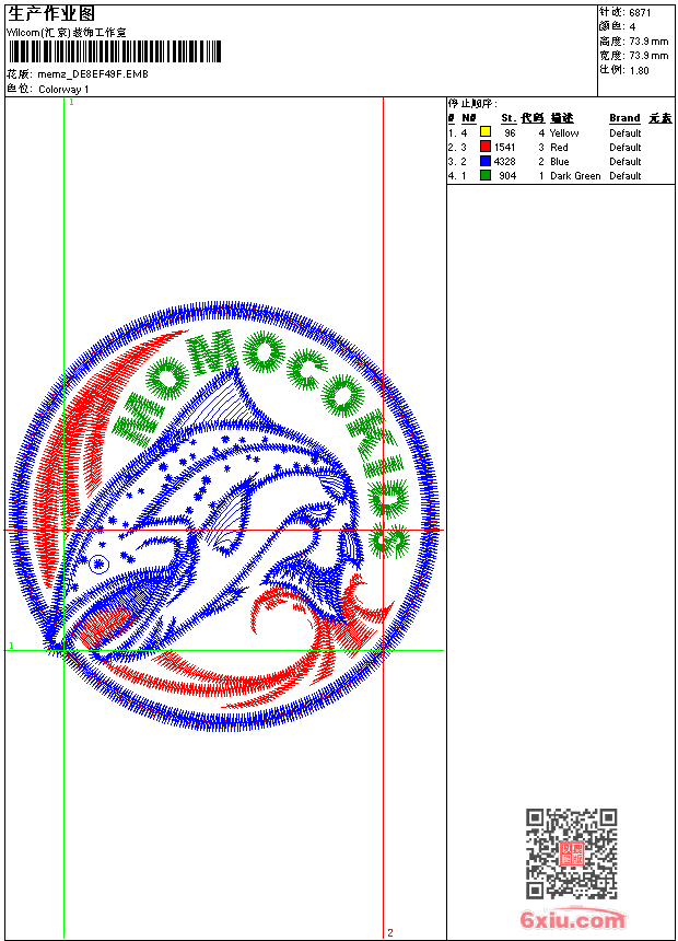 - 版带文件需绣花软件方可打开,可配色打印导出各种格式或直接上机绣。如无绣花软件可下载1:1模拟效果图。