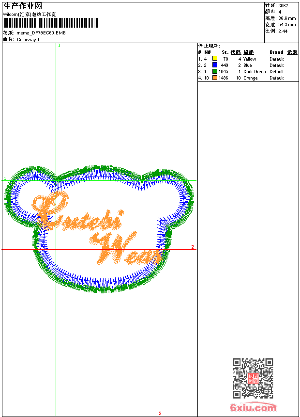 - 版带文件需绣花软件方可打开,可配色打印导出各种格式或直接上机绣。如无绣花软件可下载1:1模拟效果图。