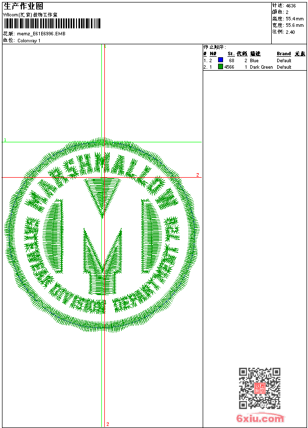 - emb花版参数: 大小:49.00 KB / 尺寸:56*55[毫米] / 针数:4636针 / 线色:2 / 格式:emb / 版本:9