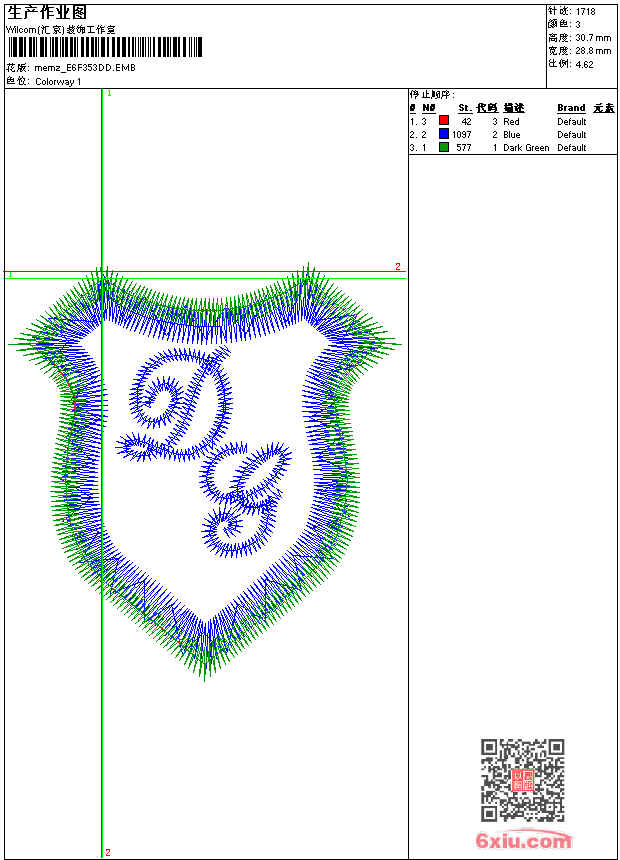 - emb花版参数: 大小:28.50 KB / 尺寸:29*31[毫米] / 针数:1718针 / 线色:3 / 格式:emb / 版本:9