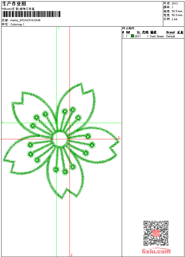 - emb花版参数: 大小:32.00 KB / 尺寸:51*50[毫米] / 针数:2813针 / 线色:1 / 格式:emb / 版本:9