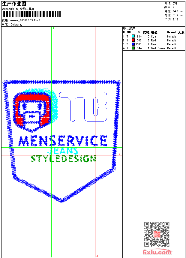 - emb花版参数: 大小:38.00 KB / 尺寸:62*65[毫米] / 针数:5581针 / 线色:4 / 格式:emb / 版本:9
