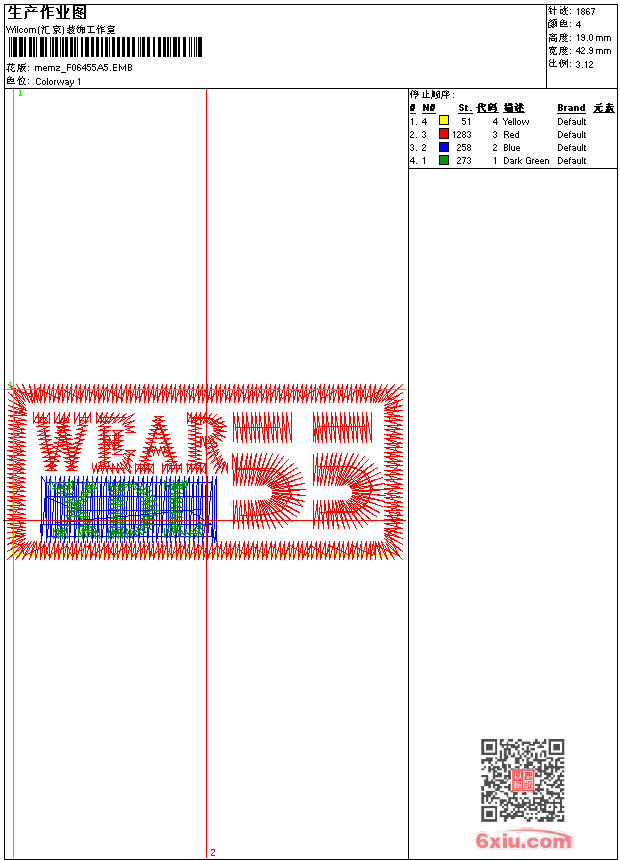 - 版带文件需绣花软件方可打开,可配色打印导出各种格式或直接上机绣。如无绣花软件可下载1:1模拟效果图。