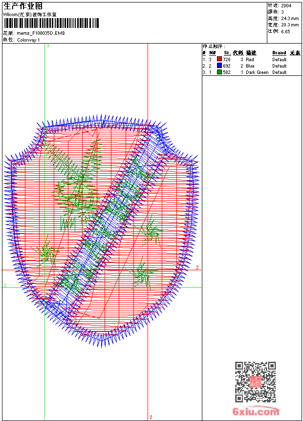 - emb花版参数: 大小:29.50 KB / 尺寸:20*24[毫米] / 针数:2004针 / 线色:3 / 格式:emb / 版本:9