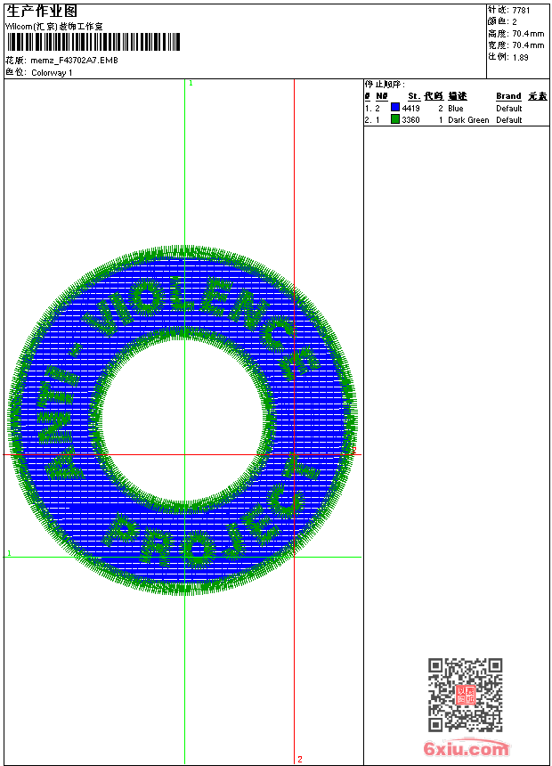 - emb花版参数: 大小:1.23 MB / 尺寸:70*70[毫米] / 针数:7781针 / 线色:2 / 格式:emb / 版本:9