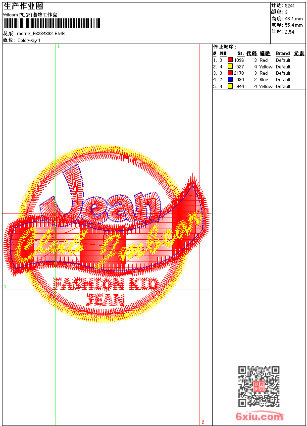 - emb花版参数: 大小:50.50 KB / 尺寸:55*48[毫米] / 针数:5241针 / 线色:3 / 格式:emb / 版本:9