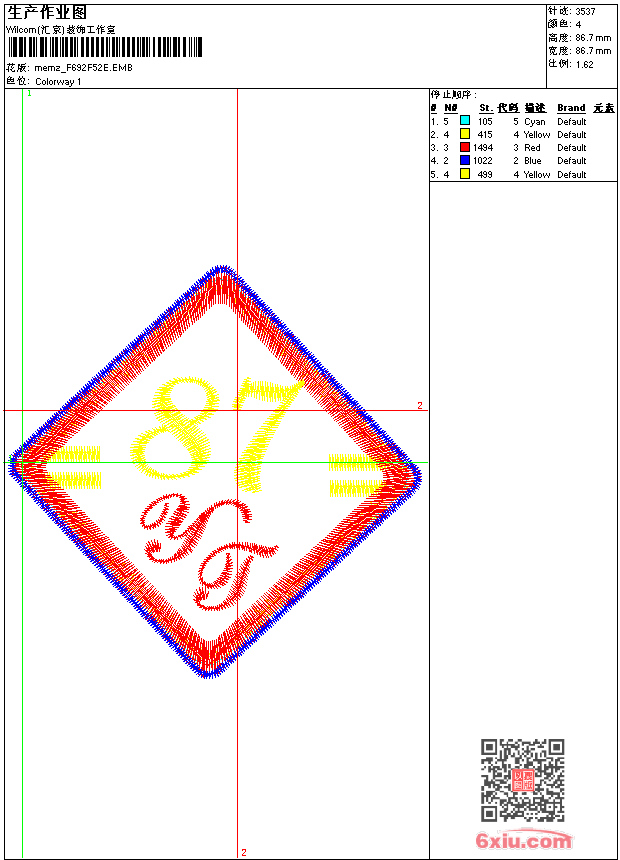 - 版带文件需绣花软件方可打开,可配色打印导出各种格式或直接上机绣。如无绣花软件可下载1:1模拟效果图。