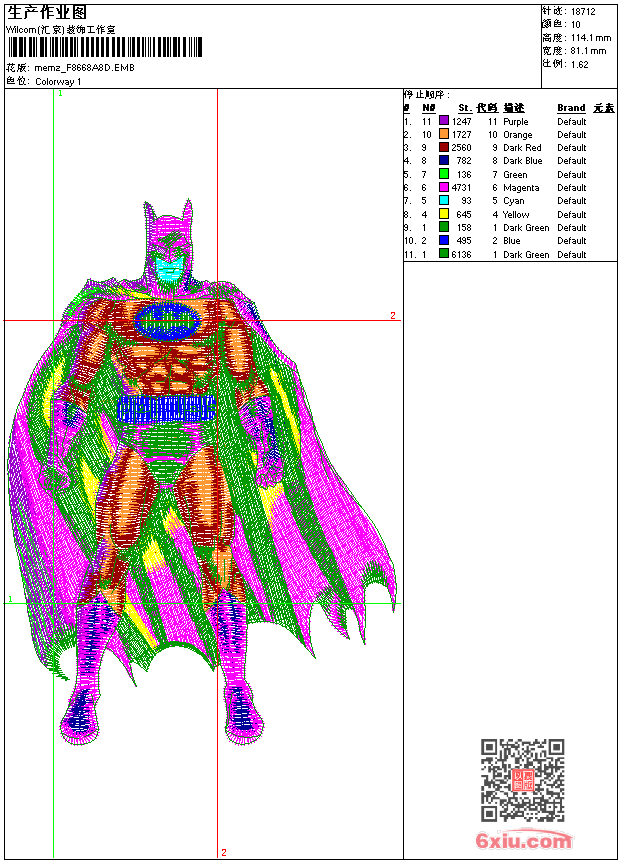 - emb花版参数: 大小:1.24 MB / 尺寸:81*114[毫米] / 针数:18712针 / 线色:10 / 格式:emb / 版本:9