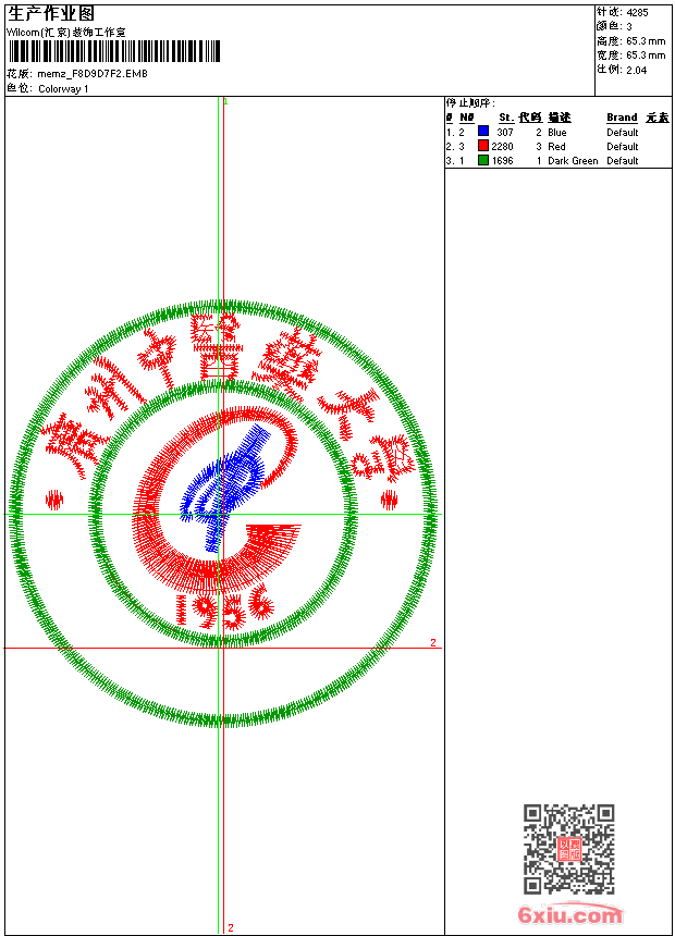 - emb花版参数: 大小:496.00 KB / 尺寸:65*65[毫米] / 针数:4285针 / 线色:3 / 格式:emb / 版本:9