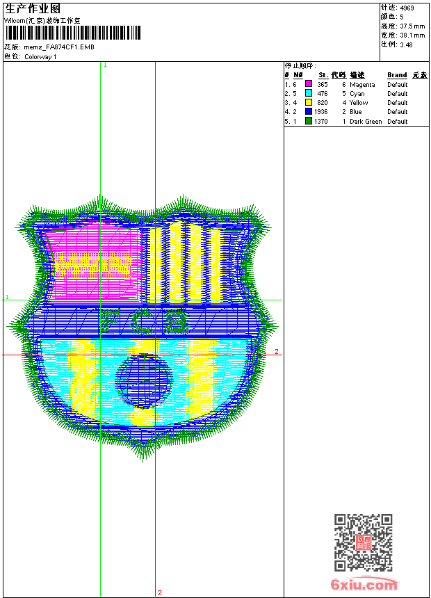 - emb花版参数: 大小:38.00 KB / 尺寸:38*37[毫米] / 针数:4969针 / 线色:5 / 格式:emb / 版本:9