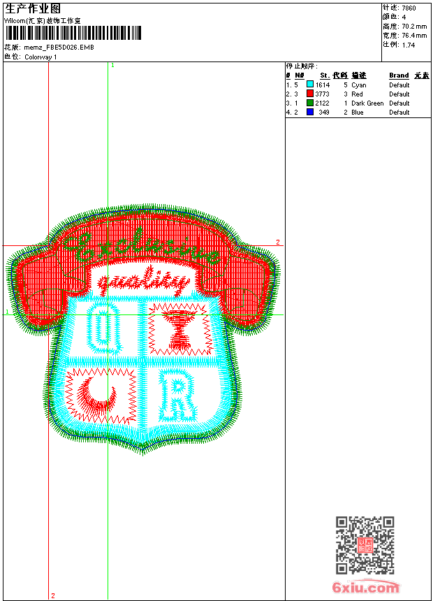 - 版带文件需绣花软件方可打开,可配色打印导出各种格式或直接上机绣。如无绣花软件可下载1:1模拟效果图。