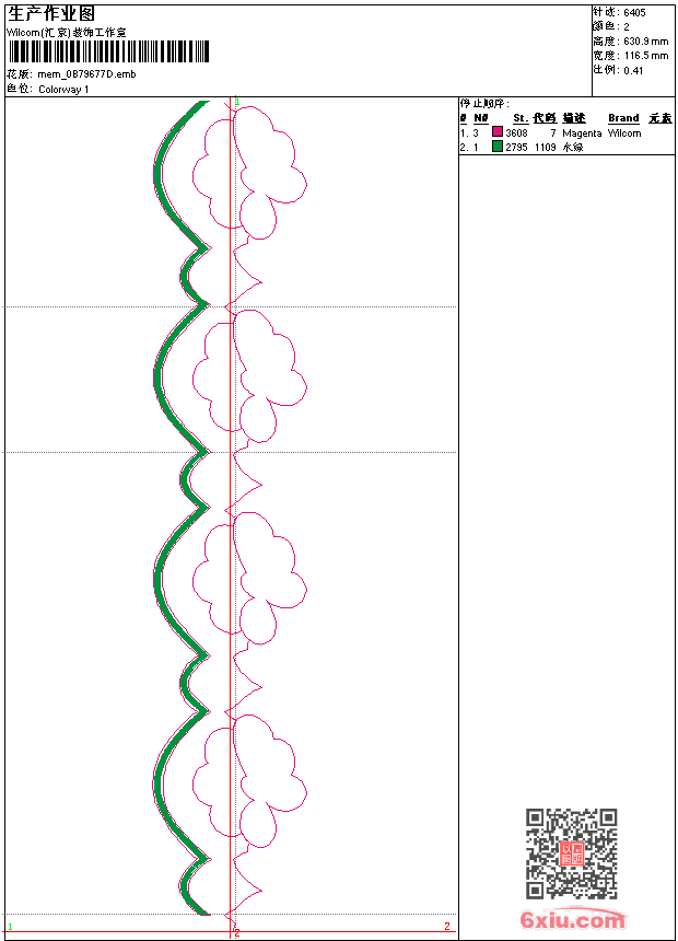 - emb花版参数: 大小:3.06 MB / 尺寸:117*631[毫米] / 针数:6405针 / 线色:2 / 格式:emb / 版本:e2