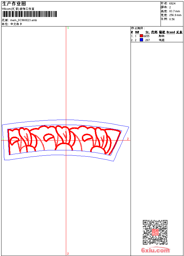 - emb花版参数: 大小:768.00 KB / 尺寸:257*84[毫米] / 针数:6924针 / 线色:2 / 格式:emb / 版本:e2