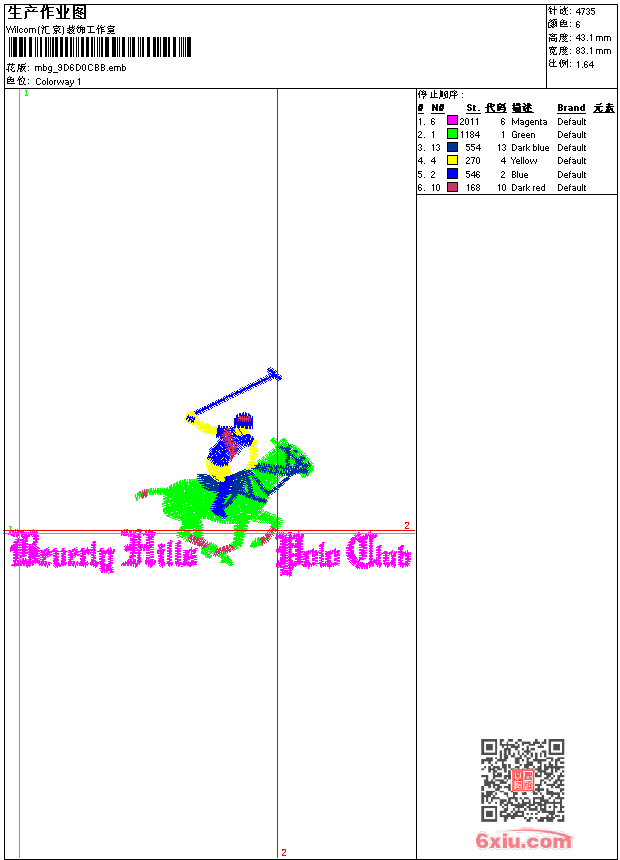 • 版带文件需绣花软件方可打开,可配色打印导出各种格式或直接上机绣。如无绣花软件可下载1:1模拟效果图。