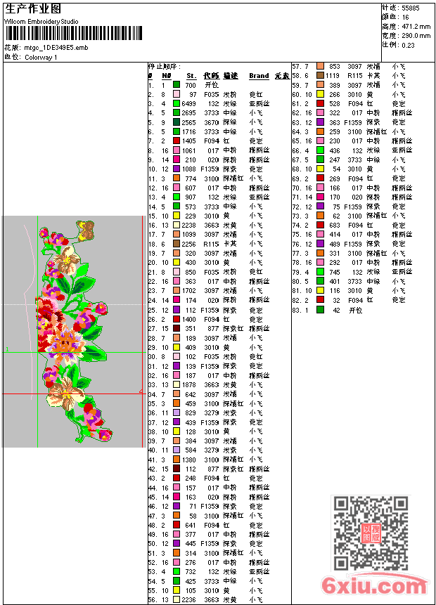 - emb花版参数: 大小:501.50 KB / 尺寸:290*471[毫米] / 针数:55885针 / 线色:16 / 格式:emb / 版本:e2