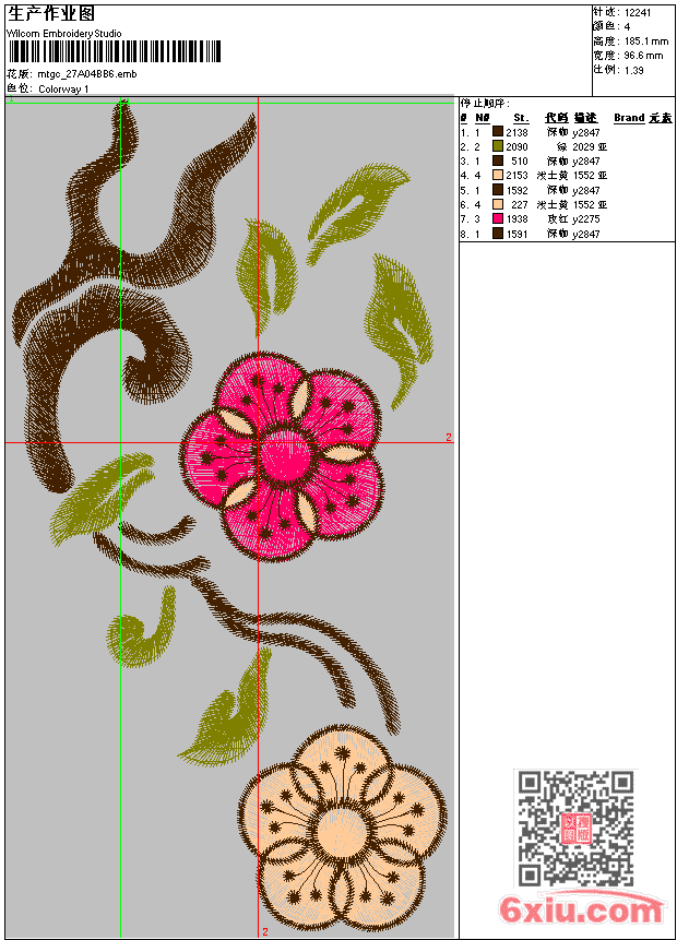 - emb花版参数: 大小:110.50 KB / 尺寸:97*185[毫米] / 针数:12241针 / 线色:4 / 格式:emb / 版本:e2