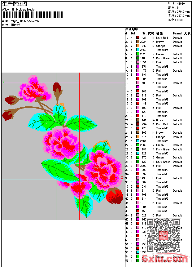 - emb花版参数: 大小:248.00 KB / 尺寸:227*270[毫米] / 针数:41020针 / 线色:9 / 格式:emb / 版本:e2