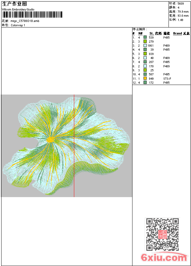 - emb花版参数: 大小:84.50 KB / 尺寸:94*80[毫米] / 针数:5609针 / 线色:4 / 格式:emb / 版本:e2