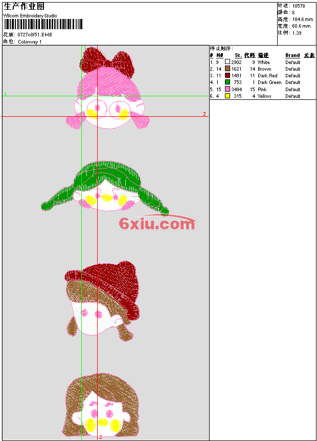 - emb花版参数: 大小:957.50 KB / 尺寸:61*185[毫米] / 针数:11286针 / 线色:6 / 格式:emb / 版本:e4.2