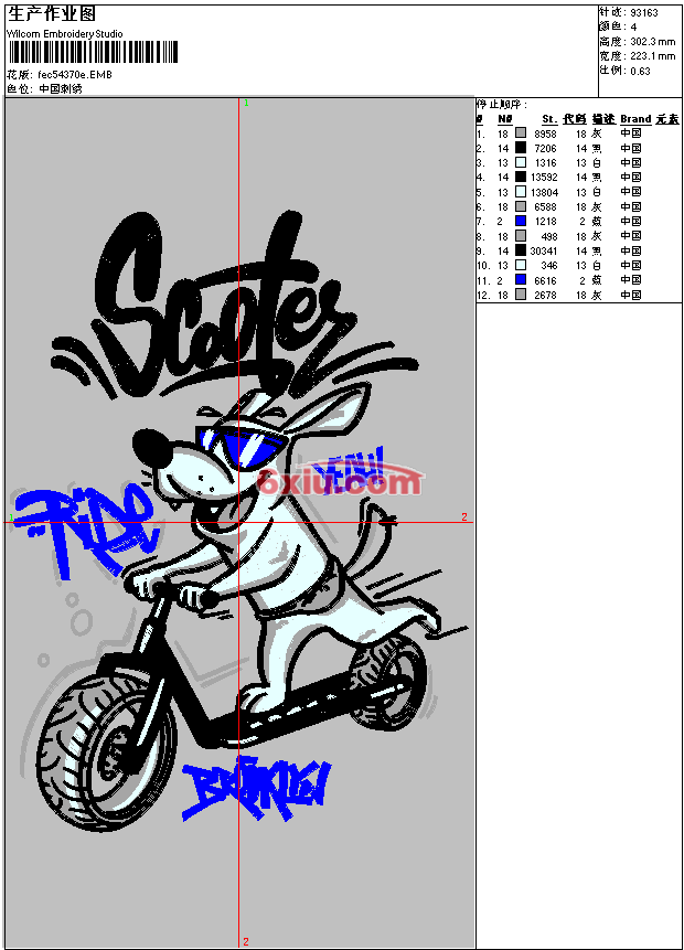 - 版带文件需绣花软件方可打开,可配色打印导出各种格式或直接上机绣。如无绣花软件可下载1:1模拟效果图。