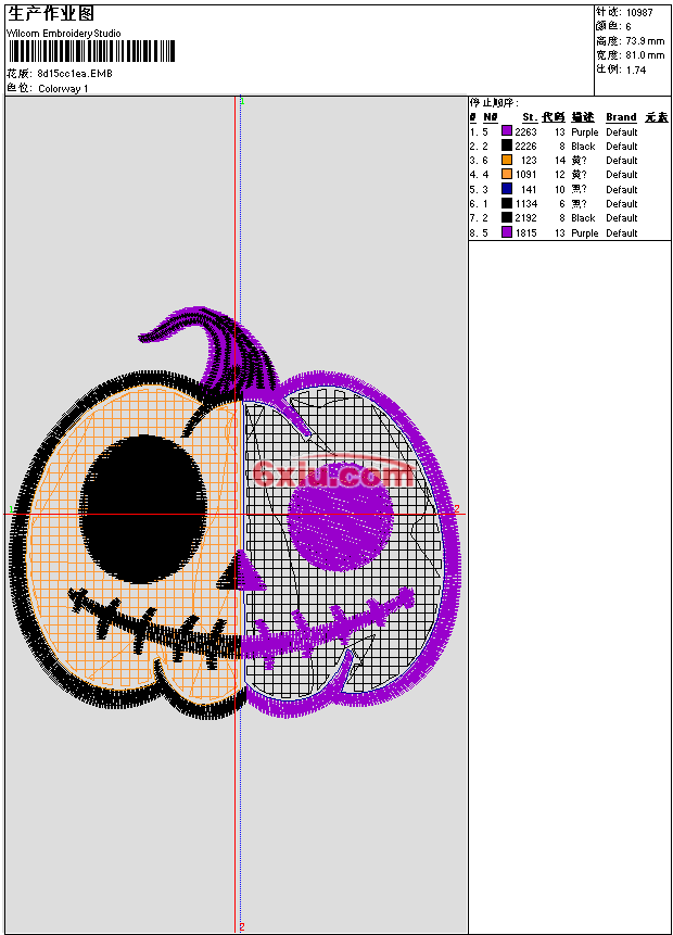 - emb花版参数: 大小:263.00 KB / 尺寸:81*74[毫米] / 针数:10987针 / 线色:6 / 格式:emb / 版本:e4.2