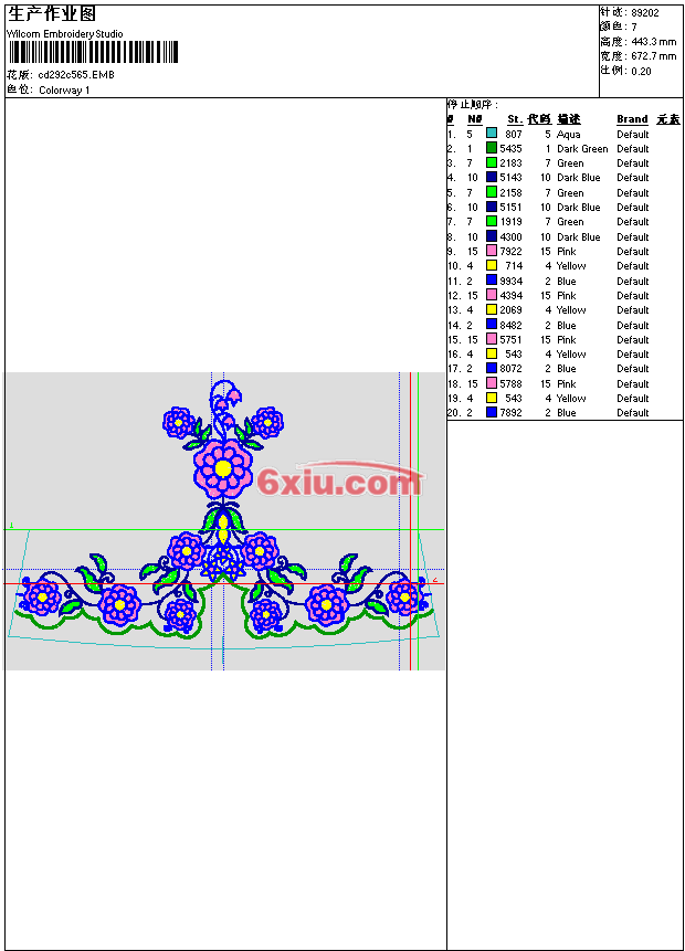 - emb花版参数: 大小:472.50 KB / 尺寸:673*443[毫米] / 针数:89202针 / 线色:7 / 格式:emb / 版本:e4.2