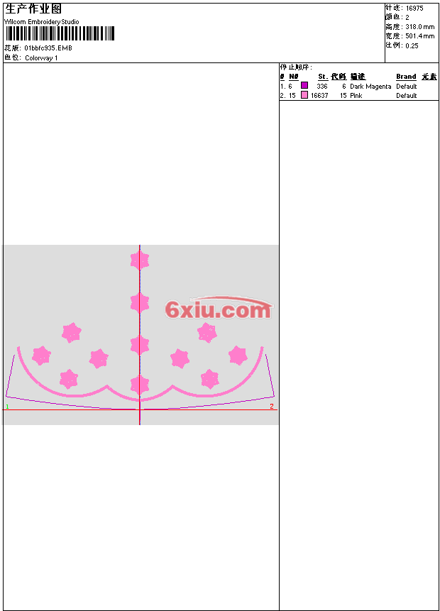 - emb花版参数: 大小:132.00 KB / 尺寸:501*318[毫米] / 针数:16975针 / 线色:2 / 格式:emb / 版本:e4.2