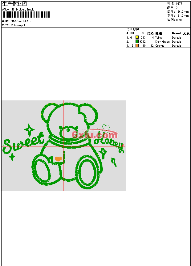 - 版带文件需绣花软件方可打开,可配色打印导出各种格式或直接上机绣。如无绣花软件可下载1:1模拟效果图。