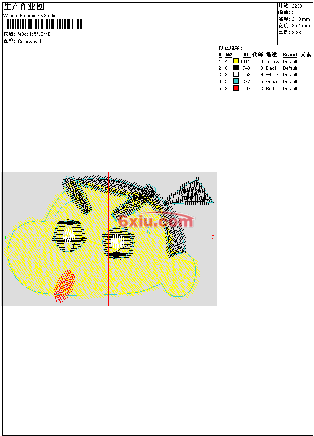 - emb花版参数: 大小:313.00 KB / 尺寸:35*21[毫米] / 针数:2234针 / 线色:5 / 格式:emb / 版本:e4.2