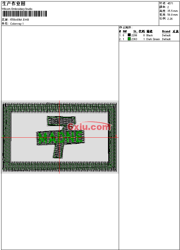 - emb花版参数: 大小:242.00 KB / 尺寸:59*36[毫米] / 针数:4571针 / 线色:2 / 格式:emb / 版本:e4.2