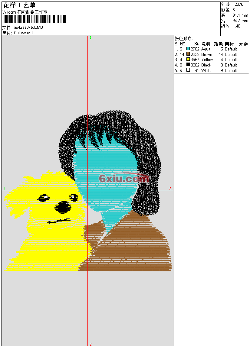 - emb花版参数: 大小:74.50 KB / 尺寸:95*91[毫米] / 针数:12413针 / 线色:5 / 格式:emb / 版本:e4.2