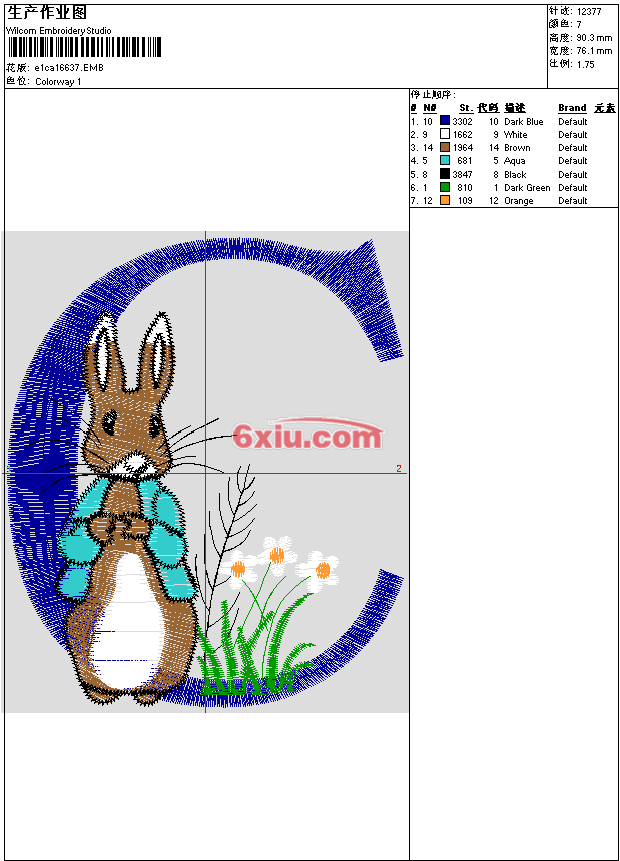 - emb花版参数: 大小:233.00 KB / 尺寸:76*90[毫米] / 针数:12377针 / 线色:7 / 格式:emb / 版本:e4.2