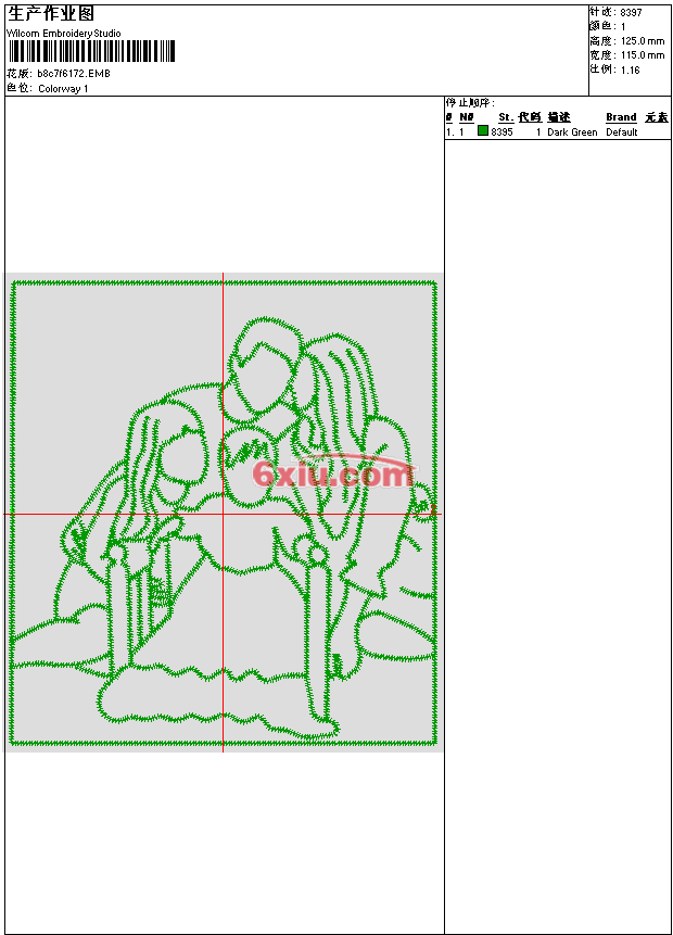 - 版带文件需绣花软件方可打开,可配色打印导出各种格式或直接上机绣。如无绣花软件可下载1:1模拟效果图。