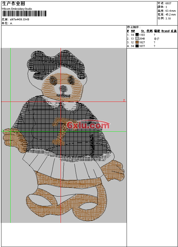 熊女 emb花版参数: 大小:38.00 KB / 尺寸:45*63[毫米] / 针数:6937针 / 线色:3 / 格式:emb / 版本:7 版带文件需绣花软件方可打开,可配色打印导出各种格式或直接上机绣。如无绣花软件可下载1:1模拟效果图。 PNG图片信息:大小:0.1(MB) /图宽*高:171x240(像素) emb下载 1:1图下载 关闭 相关花版: 小花朵 兔章 机器人 瓦力 狗 臂章 7 橙子 外星人 鼠 鹅 鹿 马 迪士尼卡通 鹿 鸟 熊 兔 米老鼠 米老鼠 迪士尼卡通 爱神 狗 蜗牛 佩奇猪 佩奇猪 虎头 GAP 熊 圆环 熊 i love you 虎头