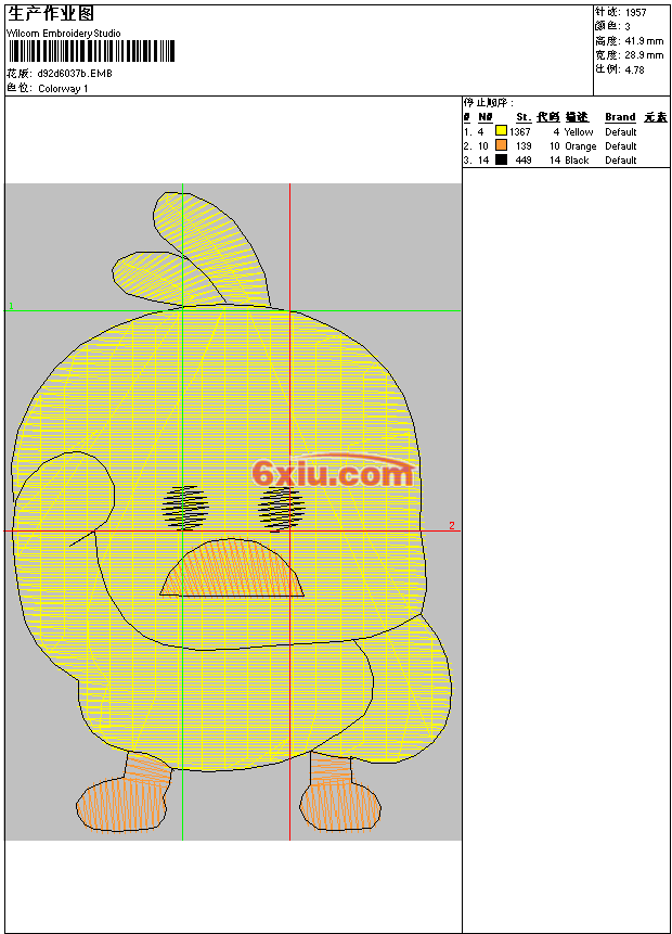 小黄鸭 emb花版参数: 大小:19.50 KB / 尺寸:29*42[毫米] / 针数:1957针 / 线色:3 / 格式:emb / 版本:7 版带文件需绣花软件方可打开,可配色打印导出各种格式或直接上机绣。如无绣花软件可下载1:1模拟效果图。 PNG图片信息:大小:0.1(MB) /图宽*高:110x159(像素) emb下载 1:1图下载 关闭 相关花版: 马宝莉 猪宝宝 狮头 奶牛 猪 马宝莉 鼠 chase hello kitty 狗 蜜蜂 奥特曼 机器人 熊女 小花朵 兔章 机器人 瓦力 狗 臂章 7 橙子 外星人 鼠 鹅 鹿 马 迪士尼卡通 鹿 鸟 熊 兔