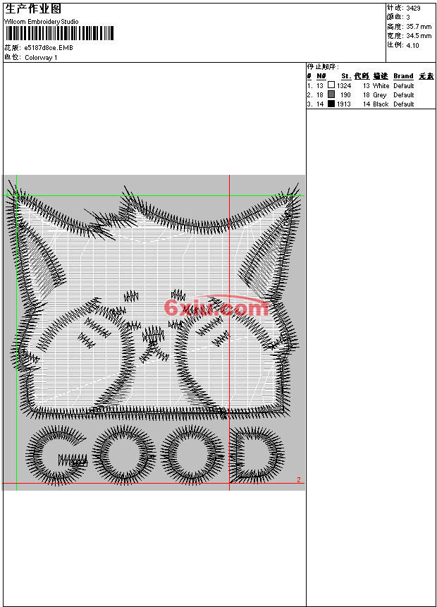 狗头 emb花版参数: 大小:27.00 KB / 尺寸:34*36[毫米] / 针数:3429针 / 线色:3 / 格式:emb / 版本:7 版带文件需绣花软件方可打开,可配色打印导出各种格式或直接上机绣。如无绣花软件可下载1:1模拟效果图。 PNG图片信息:大小:0.1(MB) /图宽*高:131x136(像素) emb下载 1:1图下载 关闭 相关花版: hello kitty 虎头 靓仔熊 米老鼠 爱心响指 猪佩奇 汽车人 熊仔 猪爸 小黄鸭 马宝莉 猪宝宝 狮头 奶牛 猪 马宝莉 鼠 chase hello kitty 狗 蜜蜂 奥特曼 机器人 熊女 小花朵 兔章 机器人 瓦力 狗 臂章 7 橙子