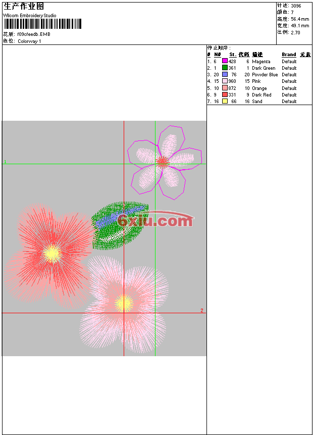 小花 emb花版参数: 大小:30.00 KB / 尺寸:50*57[毫米] / 针数:3197针 / 线色:8 / 格式:emb / 版本:7 版带文件需绣花软件方可打开,可配色打印导出各种格式或直接上机绣。如无绣花软件可下载1:1模拟效果图。 PNG图片信息:大小:0.1(MB) /图宽*高:191x217(像素) emb下载 1:1图下载 关闭 相关花版: 菠萝 可乐杯 吸管 穿裙女小熊 小飞象 蜡笔小新 蜡笔小新 工具人 蜡笔小新 猫 狗头章 火烈鸟 工具人 招财猫 草莓 爱心猪 熊猫 狗头 hello kitty 虎头 靓仔熊 米老鼠 爱心响指 猪佩奇 汽车人 熊仔 猪爸 小黄鸭 马宝莉 猪宝宝 狮头