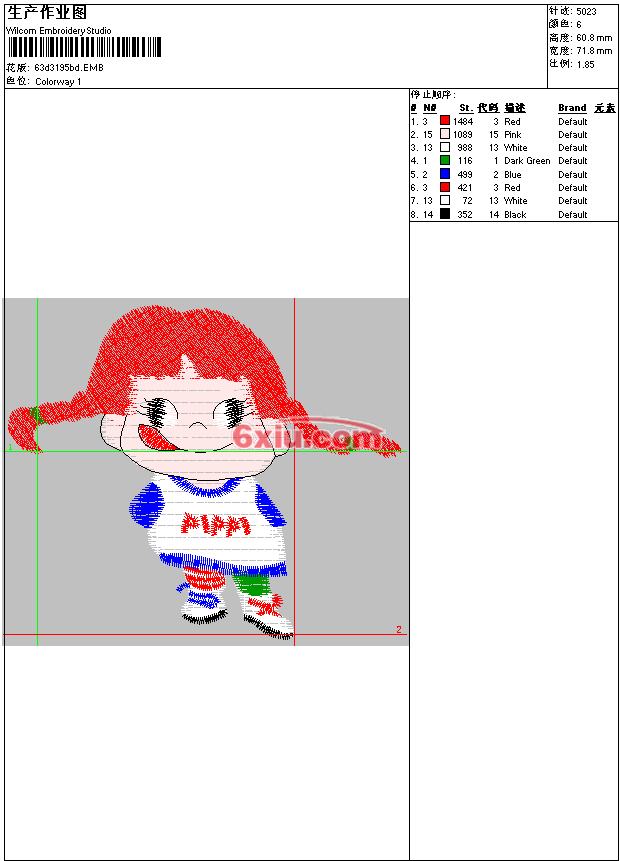 扭曲女孩 emb花版参数: 大小:37.50 KB / 尺寸:72*61[毫米] / 针数:5023针 / 线色:6 / 格式:emb / 版本:7 版带文件需绣花软件方可打开,可配色打印导出各种格式或直接上机绣。如无绣花软件可下载1:1模拟效果图。 PNG图片信息:大小:0.1(MB) /图宽*高:272x230(像素) emb下载 1:1图下载 关闭 相关花版: 小花 菠萝 可乐杯 吸管 穿裙女小熊 小飞象 蜡笔小新 蜡笔小新 工具人 蜡笔小新 猫 狗头章 火烈鸟 工具人 招财猫 草莓 爱心猪 熊猫 狗头 hello kitty 虎头 靓仔熊 米老鼠 爱心响指 猪佩奇 汽车人 熊仔 猪爸 小黄鸭 马宝莉 猪宝宝