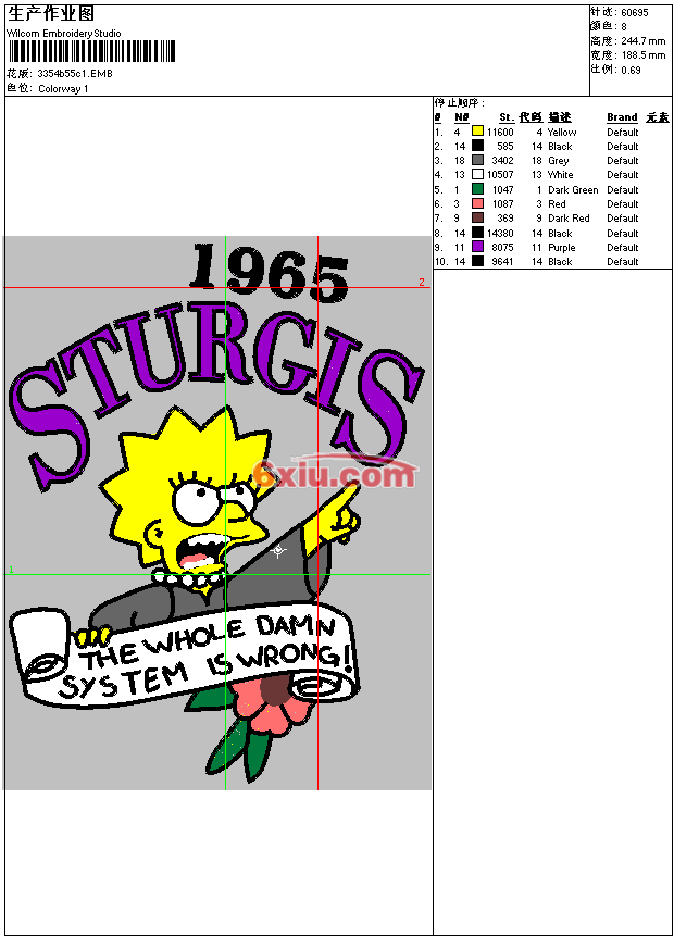 辛普森 卡通 emb花版参数: 大小:237.50 KB / 尺寸:189*245[毫米] / 针数:60695针 / 线色:8 / 格式:emb / 版本:9 版带文件需绣花软件方可打开,可配色打印导出各种格式或直接上机绣。如无绣花软件可下载1:1模拟效果图。 PNG图片信息:大小:0.6(MB) /图宽*高:714x926(像素) emb下载 1:1图下载 关闭 相关花版: 松鼠 扭曲女孩 小花 菠萝 可乐杯 吸管 穿裙女小熊 小飞象 蜡笔小新 蜡笔小新 工具人 蜡笔小新 猫 狗头章 火烈鸟 工具人 招财猫 草莓 爱心猪 熊猫 狗头 hello kitty 虎头 靓仔熊 米老鼠 爱心响指 猪佩奇 汽车人 熊仔 猪爸 小黄鸭
