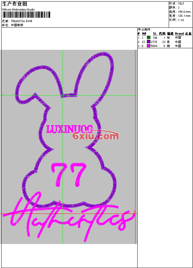 兔子 emb花版参数: 大小:664.50 KB / 尺寸:126*181[毫米] / 针数:7927针 / 线色:3 / 格式:emb / 版本:e2 版带文件需绣花软件方可打开,可配色打印导出各种格式或直接上机绣。如无绣花软件可下载1:1模拟效果图。 PNG图片信息:大小:0.1(MB) /图宽*高:477x683(像素) emb下载 1:1图下载 关闭 相关花版: 猫 熊 猴头 paul frank 大嘴猴 兔子 playboy 鞋面龙盘带绣 鞋面凤凰盘带绣 包包绣花 男 章 good luck 好运来 V领子 骨头 兔子 卡通 太阳 卡通 书 宇宙 辛普森 卡通 松鼠 扭曲女孩 小花 菠萝 可乐杯 吸管 穿裙女小熊 小飞象 蜡笔小新 蜡笔小新 工具人 蜡笔小新 猫 狗头章 火烈鸟 工具人