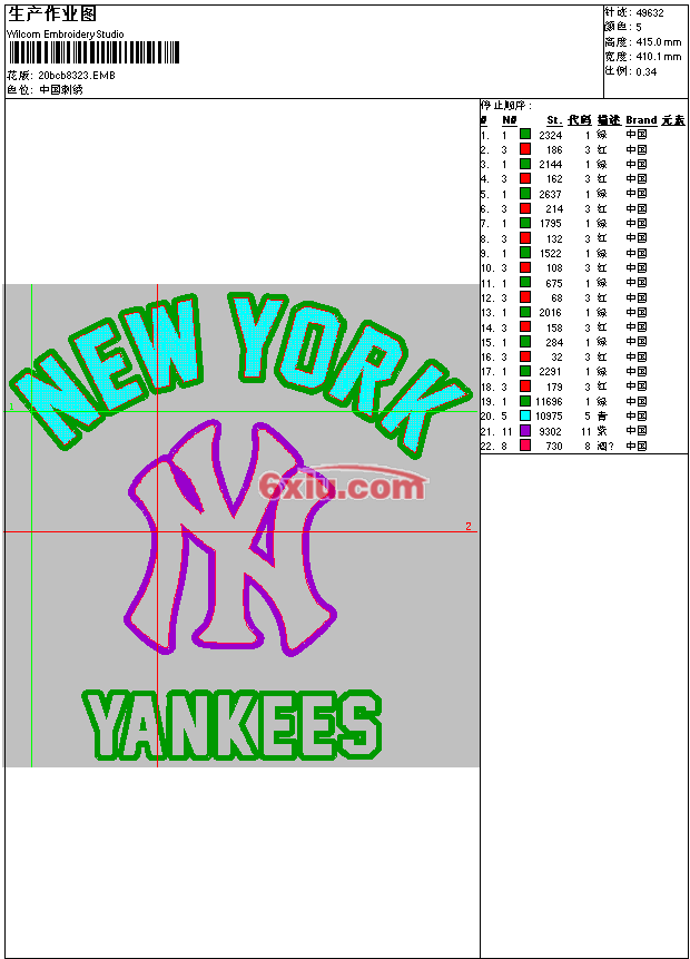 NY 标 emb花版参数: 大小:158.50 KB / 尺寸:410*415[毫米] / 针数:49632针 / 线色:5 / 格式:emb / 版本:e4.2 版带文件需绣花软件方可打开,可配色打印导出各种格式或直接上机绣。如无绣花软件可下载1:1模拟效果图。 PNG图片信息:大小:1.1(MB) /图宽*高:1552x1570(像素) emb下载 1:1图下载 关闭 相关花版: 气球爱情 龙喜 MOUES 蝙蝠 蜘蛛侠 章标 字母 79字 球标 22字 KT猫 姓名贴 眼鼻子 熊头 蝴蝶结 兔子 南瓜 蝴蝶 国风熊猫 兔子 猫 熊 猴头 paul frank 大嘴猴 兔子 playboy 鞋面龙盘带绣 鞋面凤凰盘带绣 包包绣花 男 章 good luck 好运来 V领子 骨头